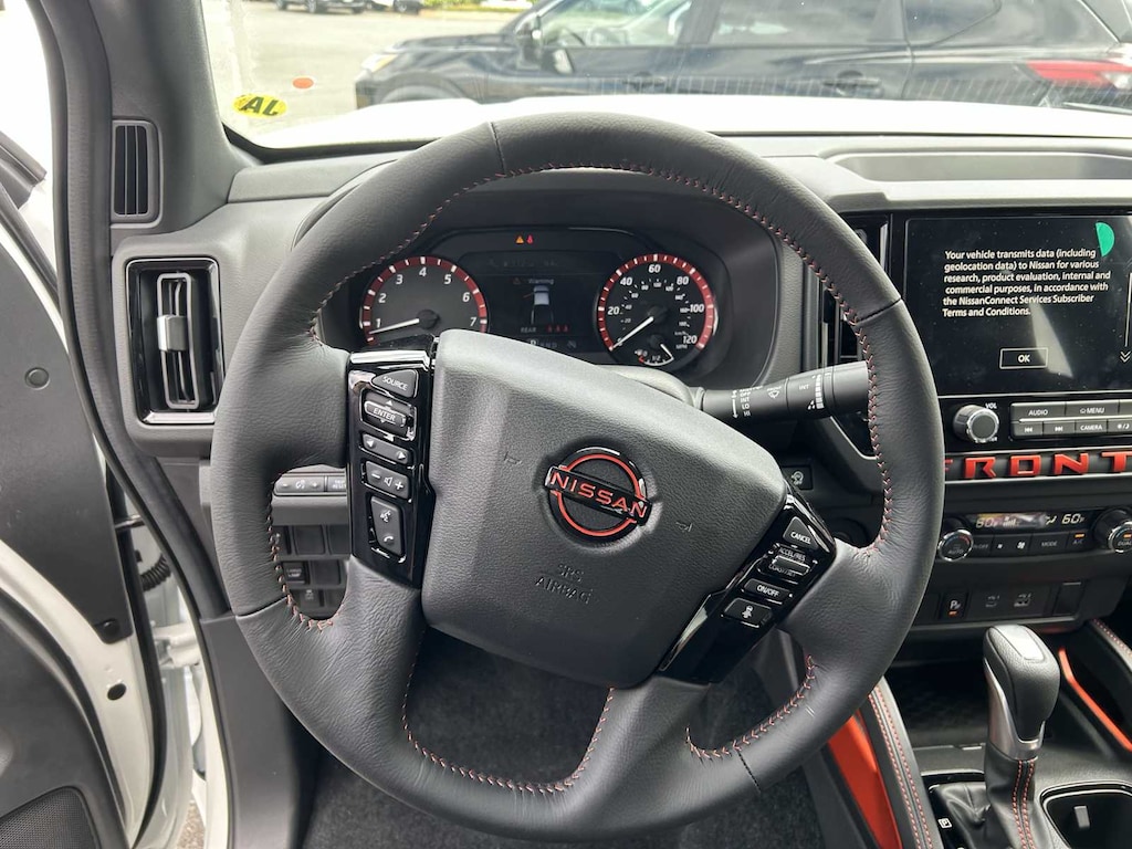 Back-Up Camera, Satellite Radio, iPod/MP3 Input, Onboard Communications System, Aluminum Wheels, Dual Zone A/C, Apple CarPlay®, Brake Actuated Limited Slip Differential, WiFi Hotspot, Cross-Traffic Alert. MP3 Player, Privacy Glass, Keyless Entry, Steering Wheel Controls. Nissan PRO-X with Glacier White exterior and Charcoal w/Lava Red St interior features a V6 Cylinder Engine with 310 HP at 6400 RPM*.