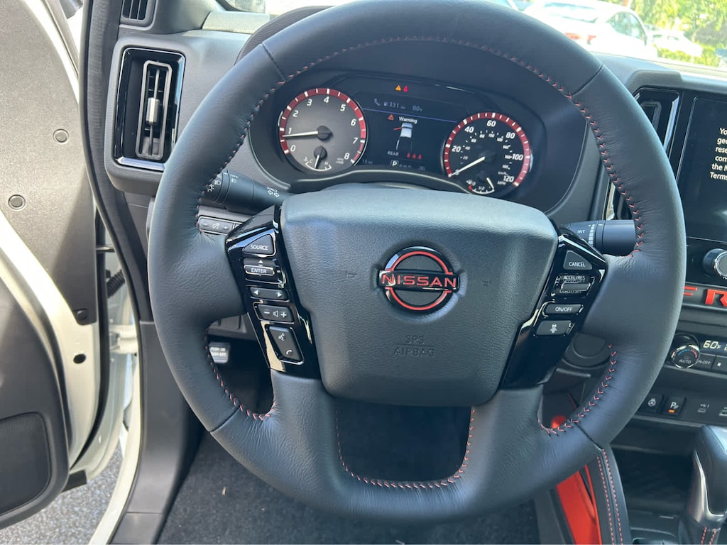 Satellite Radio, iPod/MP3 Input, Onboard Communications System, Aluminum Wheels, Dual Zone A/C, Brake Actuated Limited Slip Differential, WiFi Hotspot, Smart Device Integration, Blind Spot Monitor, Apple CarPlay® MP3 Player, Keyless Entry, Privacy Glass, Steering Wheel Controls. Nissan PRO-X with Glacier White exterior and Charcoal w/Lava Red St interior features a V6 Cylinder Engine with 310 HP at 6400 RPM*.