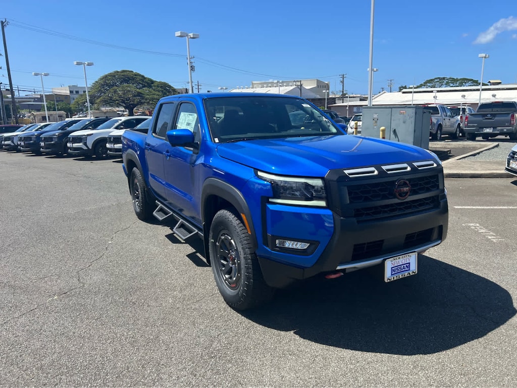 Satellite Radio, iPod/MP3 Input, Onboard Communications System, Aluminum Wheels, Dual Zone A/C, Brake Actuated Limited Slip Differential, WiFi Hotspot, Smart Device Integration, Blind Spot Monitor, Apple CarPlay®. MP3 Player, Keyless Entry, Privacy Glass, Steering Wheel Controls. Nissan PRO-X with Bluestone Pearl exterior and Charcoal w/Lava Red St interior features a V6 Cylinder Engine with 310 HP at 6400 RPM*.